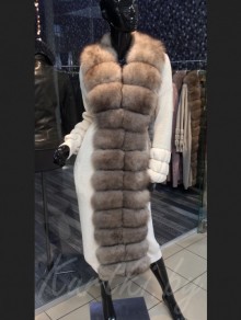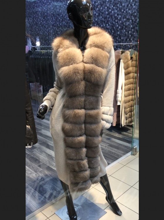 Задать вопрос по товаруВязаный кардиган с мехом песца. Также есть другие цвета вязки и меха.