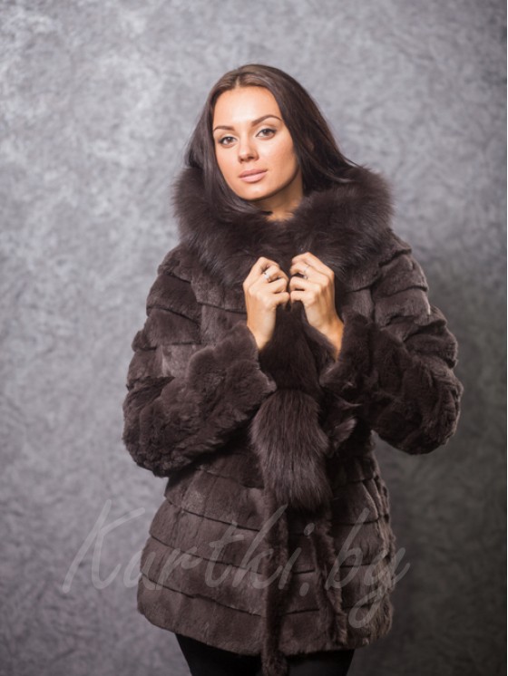 Шубка из МЕХА КРОЛИКА с капюшоном из МЕХА ПЕСЦА