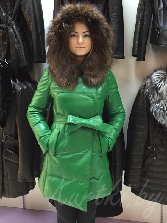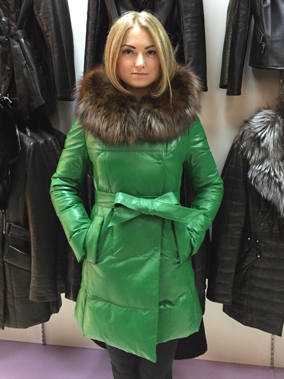 Натуральная кожа, мех лис, внутри утиный пух.