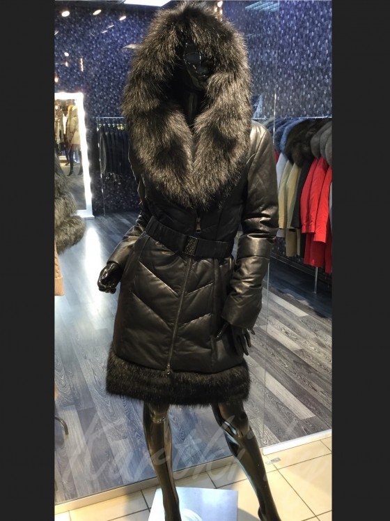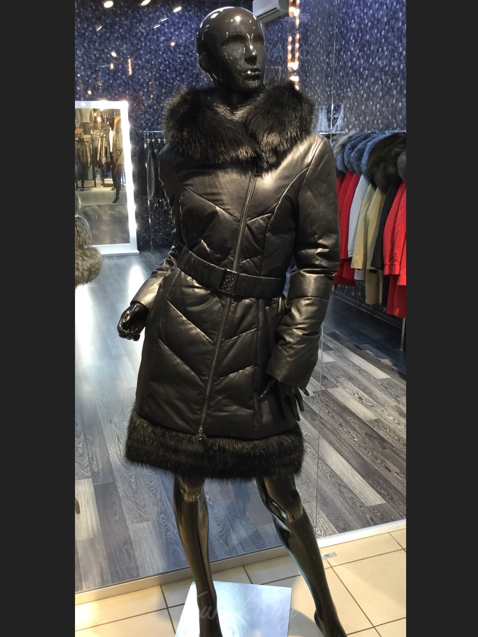 Кожаное(овчина) пуховое пальто с мехом енота. Очень тёплое, внутри утиный пух. В наличии только три размера по этойзамечательной цене!