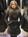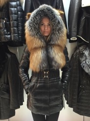 Задать вопрос по товаруКожаный пуховик черного цвета средней длины.Пуховик дополняет воротник-капюшон, декорированный натуральным мехом. Сочетание черного и теплого рыжего цвета делает пуховик ярким и стильным.